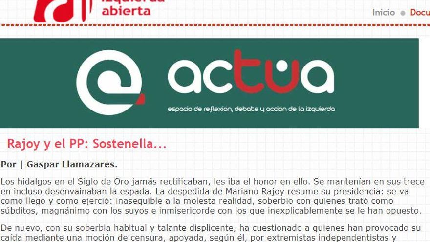 El propio Llamazares señaló hace un año a eldiario.es, que informó en exclusiva del registro del partido, de que su “lealtad a Izquierda Unida” expiraba “al final de esta legislatura”. El abogado Baltasar Garzón fue más explícito: “Actúa es un partido y la decisión de participar en política está tomada”.