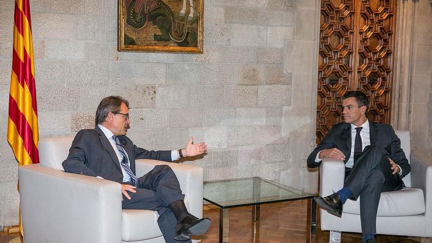 Al volver de vacaciones, los socialistas tomaron la delantera respecto a Cataluña al celebrar un encuentro de Sánchez con el presidente de la Generalitat, Artur Mas. El objetivo era mostrar su voluntad de diálogo y entendimiento frente al “inmovilismo” de Rajoy, que tardó dos meses en pisar suelo catalán y lo hizo para un acto del PP.