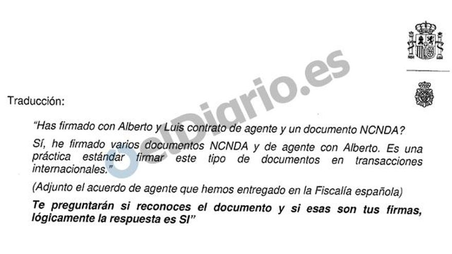 “Te preguntarán si reconoces el documento y si esas son tus firmas, lógicamente la respuesta es SI”, le traslada Luceño a ‘Anthony’ que le ha pedido a San Chin Choon. En otro momento, el español lanza: “Y en ese documento reconocerá que todos los documentos son reales y formados por él y autorizados por él, ¿verdad? Aquí en España la prensa nacional especula todos los días”. “El fiscal piensa que como Leno tiene dos firmas, una del NCNDA y Contrato de Agente y otra de la SPA, he falsificado la firma. Y lejos de toda realidad”.