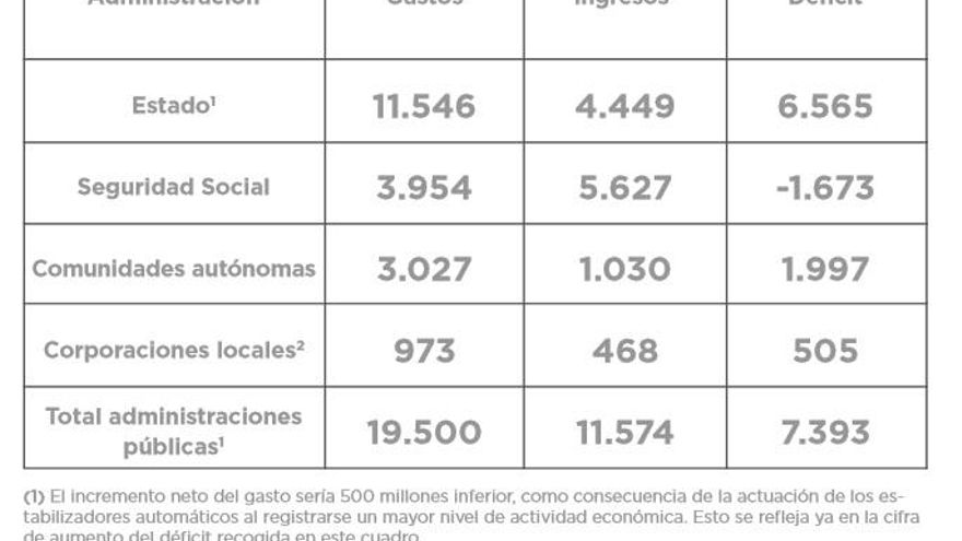 Así, los ingresos públicos pasarían del 38,2% al 38,8%, el gasto público del 41,3% al 42,5% y el déficit del -3,1% al -3,7%.