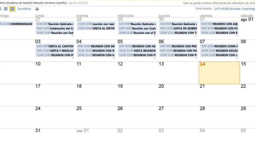 Otro ejemplo de transparencia que se está llevando a cabo en nuestro país es el que ha puesto en marcha el Ayuntamiento de Madrid. En su web se pueden consultar todos los actos y reuniones en los que va a participar la alcaldesa, Manuela Carmena, y su equipo de Gobierno.