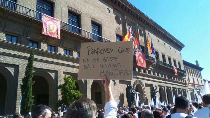 “En mi ciudad no cabe el odio”, “La violencia es de cobardes” o “Quien no sepa dialogar que dimita”, se podía leer en algunas de las pancartas blancas que portaban los ciudadanos en la capital aragonesa.