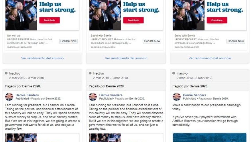 Esta estrategia no es exclusiva de los partidos de derecha. En EEUU, donde los partidos conceden mucha más importancia a su presencia en Facebook que los españoles (y donde la red social ha implementado más herramientas de transparencia para los anuncios políticos que en España), se puede analizar cómo la campaña de Bernie Sanders, por ejemplo, ha hecho cientos de pruebas con diferentes eslóganes para un mismo contenido durante las últimas semanas.