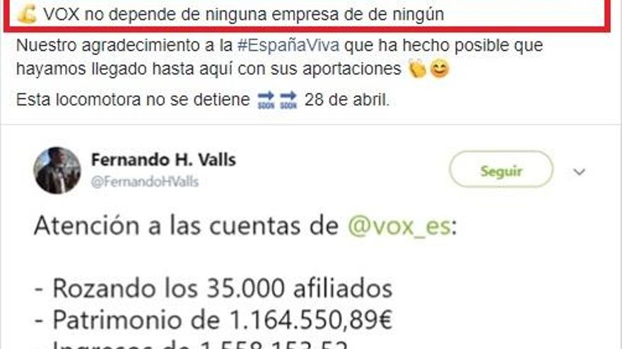 Entre esos lemas, también incluyen críticas al Partido Popular por las declaraciones de Pablo Casado sobre el voto útil y a Podemos por su defensa del feminismo. Por esta vía, también tratan de difundir sus grandes convocatorias, como la manifestación celebrada en la Plaza de Colón, el crowdfunding que acaban de lanzar o la fiesta que organizaron en el Teatro Barceló de Madrid.