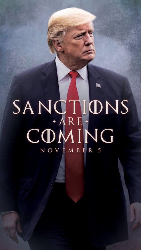 “Se acercan las sanciones”, ha publicado este viernes Trump en su perfil de Twitter, acompañado de una fotografía modificada con Photoshop copiando el estilo de la serie Juego de Tronos. La frase en sí misma es una referencia directa a “Winter is coming” (Se acerca el invierno), que tanto representa a la serie.