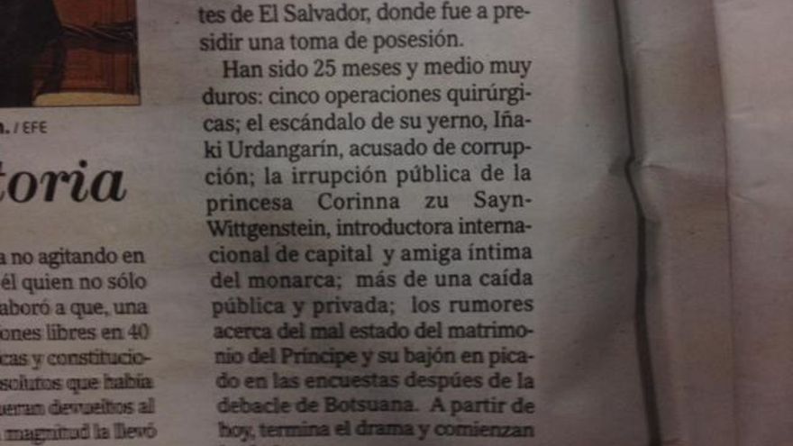 En la edición especial que se puso en circulación en la tarde del lunes, la crónica firmada por Ana Romero se refería a algunos de los problemas que han perjudicado la imagen del rey y la Casa Real, y entre ellos estaba la relación con la princesa alemana, a la que se describía como “introductora internacional de capital y amiga íntima del monarca”.