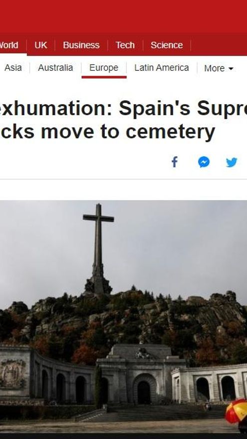“Exhumación de Franco: la Corte Suprema de España avala su traslado a un cementerio”, ha titulado la cadena de televisión inglesa BBC. Asímismo, hacen referencia a que la tumba del dictador Franco se encuentra “en un enorme mausoleo llamado Valle de los Caídos, junto a decenas de miles de muertos en la guerra civil”. Además, recogen el testimonio de la nieta de un represaliado que murió en 1936. “La idea de que las personas que fueron asesinadas por las tropas de Franco estén enterradas junto con Franco, es muy absurda, y todavía lo están glorificando como si fuera el salvador de España”, recalca Silvia Navarro.