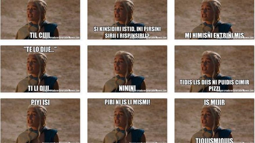 De hecho, hay una web donde pueden conseguirse camisetas que incluyen esta frase. Para los despistados, escribir las palabras reemplazando todas las vocales por la letra 'i' es una forma de representar la imitación que pretende ridiculizar a quién ha pronunciado una determinada frase. De hecho, hace un tiempo y a través de la captura de un fotograma de Juego de Tronos donde podía verse al personaje de Khaleesi con la cara arrugada, se viralizaron muchos memes que usaban esta misma técnica.