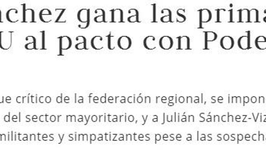 Con todo, varios medios de comunicación conservadores en su mayoría, como ABC, Libertad Digital, Voz Populi, La Razón o Diarioprogresista.es, se han empeñado en apostar en sus titulares al día siguiente de las primarias por un supuesto plan urdido para que Podemos acabe con IU. La idea es considerar a Tania Sánchez una especie de submarino de Podemos sólo por su relación personal con Iglesias.