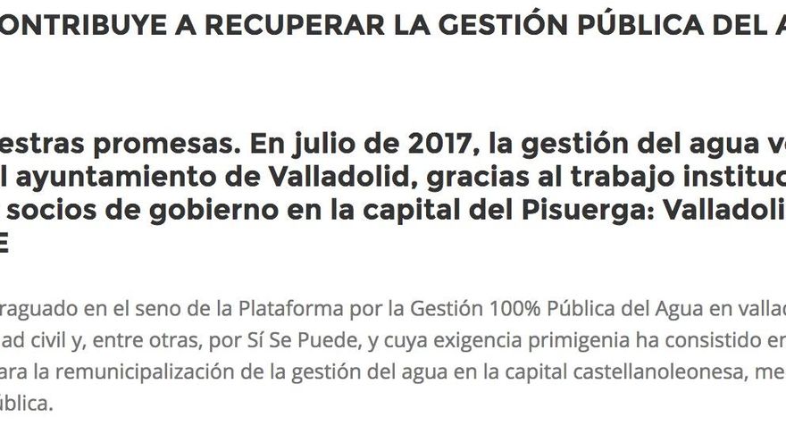 De “Podemos recupera la gestión pública del agua en Valladolid” a “Sí se Puede contribuye a recuperar”