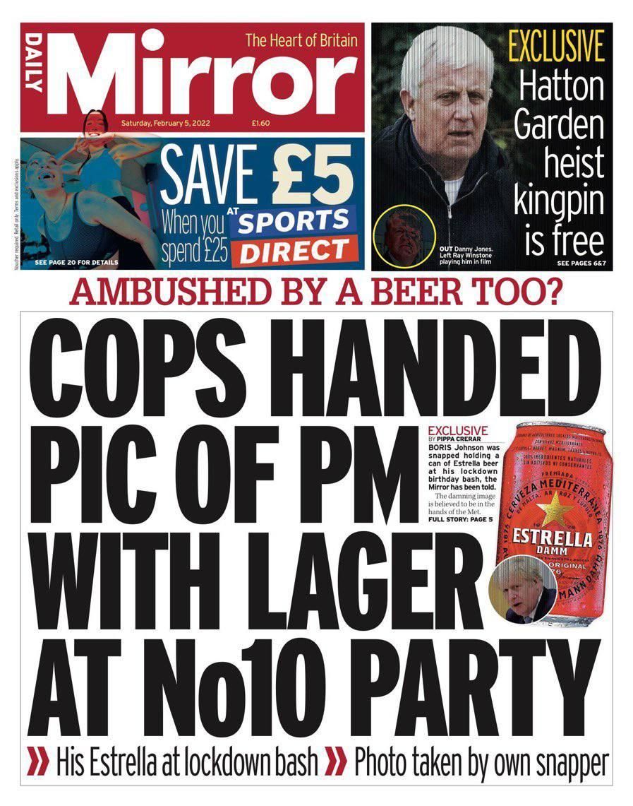 En sus investigaciones, la policía está analizando alrededor de 300 fotografías sobre estas fiestas, entre las que se encuentra una de la celebración del cumpleaños de Johnson, el 19 de junio de 2020, con una lata de Estrella Damm. “Su Estrella en la fiesta de confinamiento”, recoge el periódico 'The Daily Mirror' en su portada, donde aparece una imagen de la bebida y se indica que la foto habría sido tomada desde su propio teléfono.