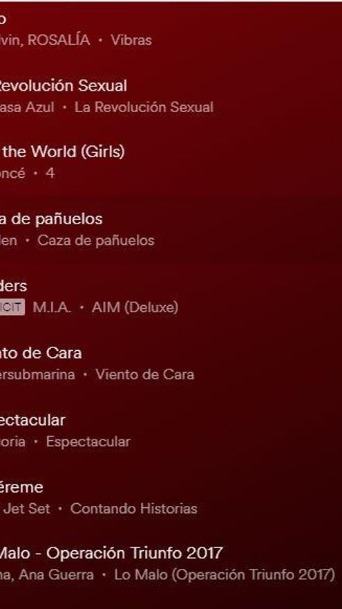 ¿Está Rosalía en esta recopilación? Por supuesto. Entre el centenar de canciones se encuentra el tema Brillo, junto a J Balvin y Pienso en tu mirá. La playlist, de marcado carácter nacional, cuenta con grupos como La Casa Azul, La otra, Zahara, Carolina Durante, Camela, Chenoa, Los Ronaldos o Iván Ferreiro.