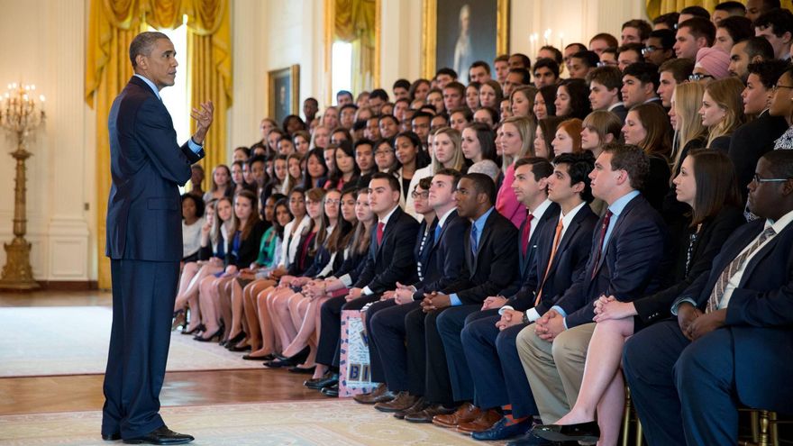 Se trata de la fotografía del actual presidente estadounidense junto a los becarios de la Casa Blanca, en la que se puede apreciar que solo dos de los 91 no son blancos. La comparación de esta imagen con la del anterior presidente, Barack Obama, ha provocado un torrente de críticas en las redes sociales, que han reprochado a Trump no haber tenido en cuenta la diversidad del país norteamericano.