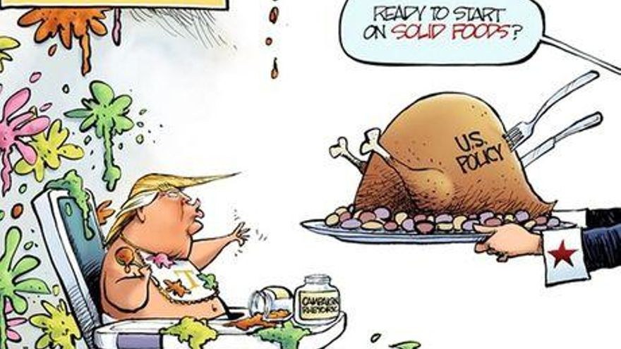 Lo cierto es que la imagen de Trump como un bebé no es nueva. A pesar de la adorable imagen de la que gozan los bebés es evidente que en ellos también hay una 'expectativa de civilización' y que actúan como pequeños animalillos que buscan satisfacer sus necesidades más primarias. Es la imagen que se encarga de reforzar Trump, para quién la diplomacia no parece ser una prioridad. Esta yuxtaposición que representa a Trump como una suerte de Bebé Jefazo ha funcionado muy bien para activistas y artistas a la hora de retratar al presidente de los Estados Unidos.