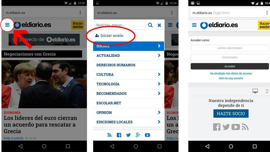 Por supuesto si eres socio de eldiario.es podrás acceder al adelanto diario de noticias. Para ello solamente tendrás que iniciar sesión con tu usuario y contraseña habituales en cualquier página, sea la portada o sean las propias noticias a las que solo tú, como socio, puedes acceder con unas horas de antelación.