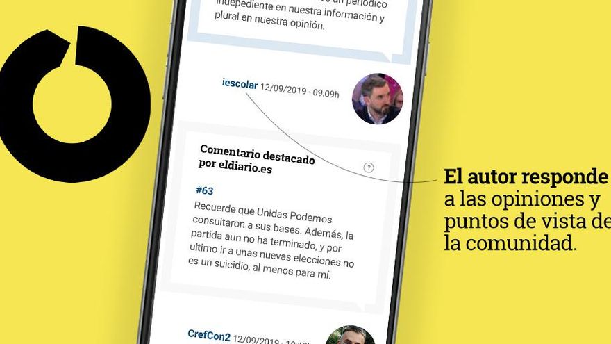 ‘Buscamos comentarios educados para un intercambio de opiniones argumentado y constructivo: entre la comunidad de lectores y socios de eldiario.es y también con los autores de cada artículo’. Así comienzan las Normas de participación en el foro de comentarios de eldiario.es que rigen este espacio de conversación donde las socias, socios y usuarios exponen su opinión sobre los temas publicados en eldiario.es.