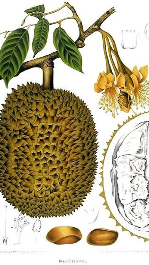 El durio, durián o durian, reina de las frutas que muchos occidentales aborrecen pero que es muy apreciada en el sudeste asiático, mueve millones y despierta intensas pasiones, y no sólo entre los orangutanes. Un grupo de científicos de Singapur ha investigado los secretos de su intenso, penetrante e inconfundible aroma que en temporada empapa las calles en países como Tailandia, Camboya o Vietnam pero que resulta tan peculiar que en los hoteles y transportes públicos está prohibido entrar llevando esta fruta.