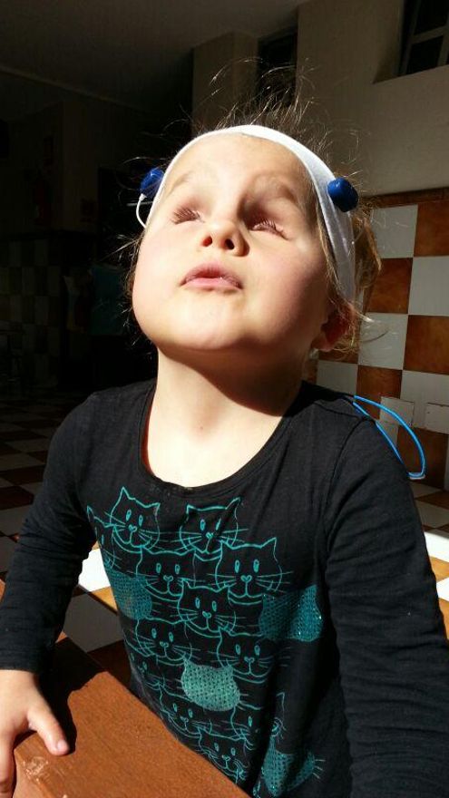 Ahora Dácil se ha estabilizado. Puede tragar y masticar, aunque comer le lleva su tiempo. No camina sola y tiene problemas de equilibrio, en parte porque tiene sólo un 50% de audición, más dependiendo de las frecuencias. Tampoco responde bien a estímulos y los padres creen que no reconoce la voz humana. Gracias a un audífono óseo, ha aumentado su capacidad de recibir sonidos pero una comunicación elaborada es imposible. “Emite sonidos pero no imita sonidos”, me dice Cisca. A veces balbucea consigo misma pero es ininteligible. No saben por qué Dácil es capaz de escuchar pero incapaz de hablar. Debido a esta falta de comunicación, es difícil saber si sufre o no un retraso mental.
