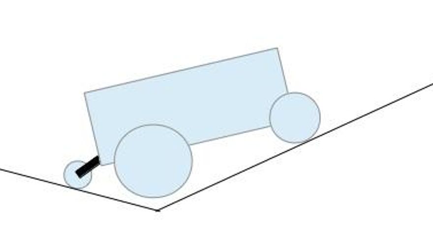 De manera que la rueda motriz, la grande de en medio, la única que está conectada al motor y, por tanto, puede hacer fuerza, se queda en el aire girando libre, y el cascao se queda parado. Ante lo cual, su única opción es pedir a algún amable transeúnte que le dé un bonito empujón para poder seguir su camino.