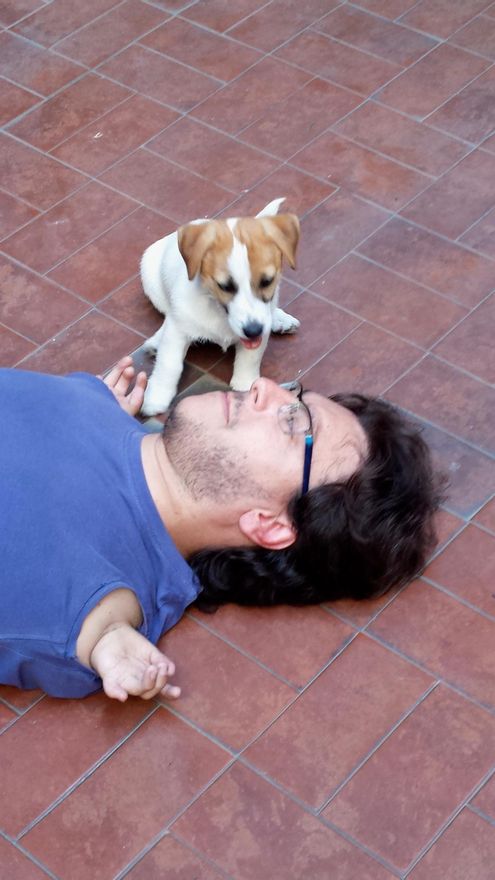 No fue difícil elegir la raza. Los mejores para estos casos son los labradores pero son demasiado grandes para mí. Entre el Jack Russell y el teckel (o perro salchicha), elegí el Russell de pelo corto. Buscamos en diferentes criadores y elegimos una cachorrita nacida hacía un mes escaso. La reservamos y hace una semana llegó a casa de mis padres.