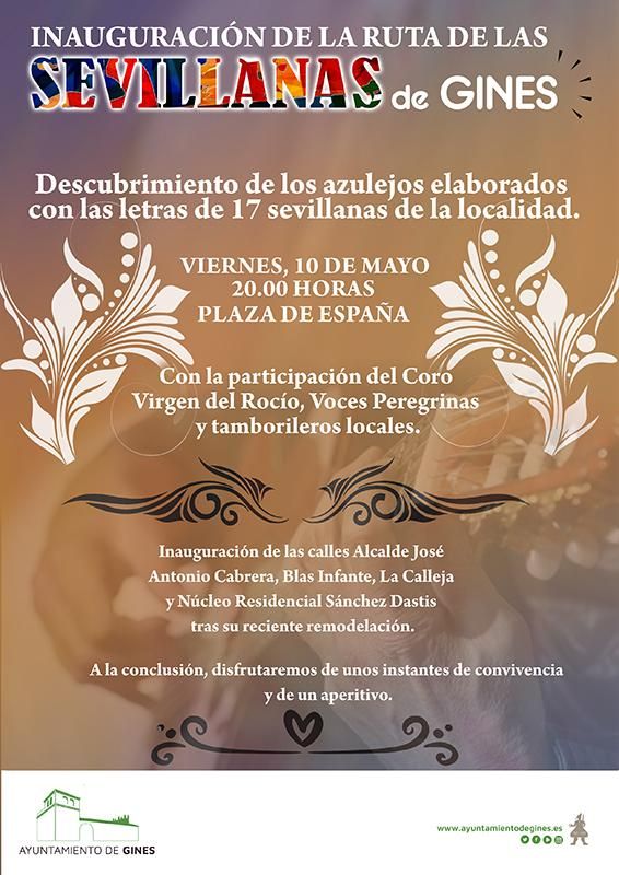 Este viernes, día 10 de mayo, Gines estrena su ‘Ruta de las Sevillanas’, una iniciativa ideada por el Ayuntamiento con la que se pretende destacar y poner en valor el rico patrimonio musical de la localidad en este género.