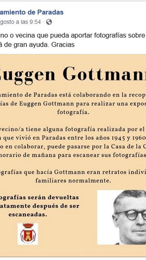 Eugen Gottmann (Diedesheim, Alemania, 1885-Paradas, Sevilla, 1960) buscó refugio en la España franquista, como otros nazis, para evitar los juicios por crímenes contra la Humanidad en la II Guerra Mundial. Así acabó siendo un “fotógrafo alemán que vivió en Paradas entre los años 1945 y 1960”, según explica el propio Ayuntamiento en el anuncio publicado en redes sociales.