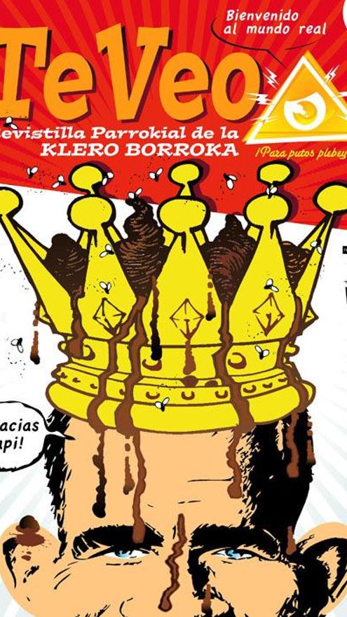 TeVeo, según su director, viene publicándose desde septiembre de 2013 y este será el primer año que tire cuatro números, uno por trimestre. Normalmente se han publicado tres números durante el año. La portada de este número 8 se asemeja bastante a la de El Jueves que fue retirada hace dos años y que representaba una corona llena de caca en alusión a “la herencia recibida por Felipe VI”.