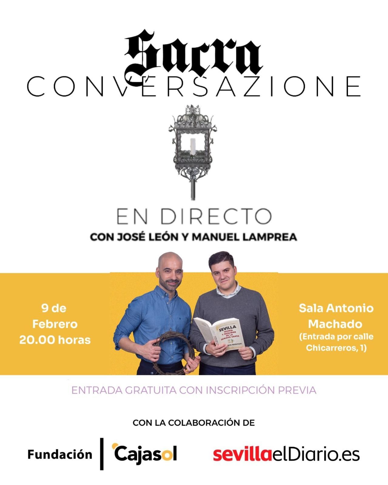 El pódcast 'Sacra Conversazione' inaugura su tercera temporada con un episodio en directo y con público que se adelanta a la Cuaresma. Manu Lamprea y José León se reencontrarán con sus oyentes el próximo 9 de febrero, a partir de las 20.00, en la Sala Antonio Machado de la Fundación Cajasol. La entrada es gratuita, previa inscripción.