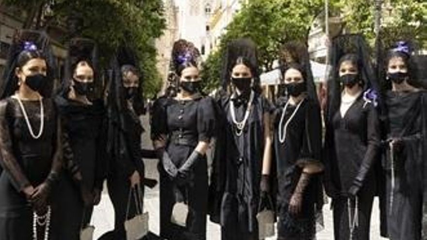 Así y con todo, este Viernes de Dolores ya se produjeron colas en algunas iglesias, una imagen que se va a repetir durante toda la Semana Santa. En paralelo, y mientras mujeres vestidas de mantilla recorrían el barrio de Santa Cruz en una performance de moda para promocionar este sector, tampoco le faltaba público a las numerosas exposiciones cofrades que salpican la ciudad estos días, una larga nómina en la que la última en incorporarse abría sus puertas en la Casa Fabiola. Lo hacía para mostrar una propuesta muy representativa de lo que era la jornada: 'Visiones de la Semana Santa y Feria de Abril desde el siglo XIX al XXI'.