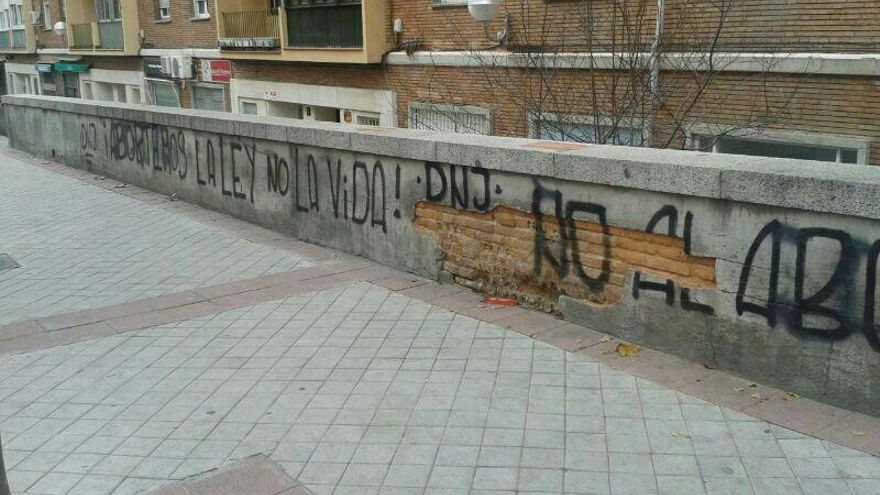 La otra pintada apareció en el cierre metálico de un restaurante cercano, por lo que solo es visible cuando el local permanece cerrado. Según señalan desde el centro, el letrero dice: “Dais de comer a abortistas”. “Su objetivo ya no es sólo el acoso, sino que también pretenden ponernos en contra de las personas y negocios que están a nuestro alrededor·, señala Sancho, quien afirma que ya han presentado la denuncia, y sobre todo subraya que este ”es uno de tantos ataques que desde hace años venimos sufriendo por parte de los grupos“ contrarios al aborto.