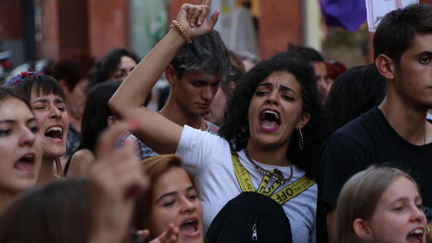Alicia y Héctor gritan fuerte “la manada es el sistema”. Los dos tienen tan solo 16 años, pero ya han acudido en más ocasiones a las puertas del ministerio a protestar. Ella dice que “el sistema el sistema nos está asfixiando y lo de Juana ha sido lo que ha colmado, después de todo el año que llevamos”. Él anima a otros chicos a acudir a este tipo de protestas porque, “los primeros que tenemos que cambiar somos los hombres” y así acabar con el machismo.