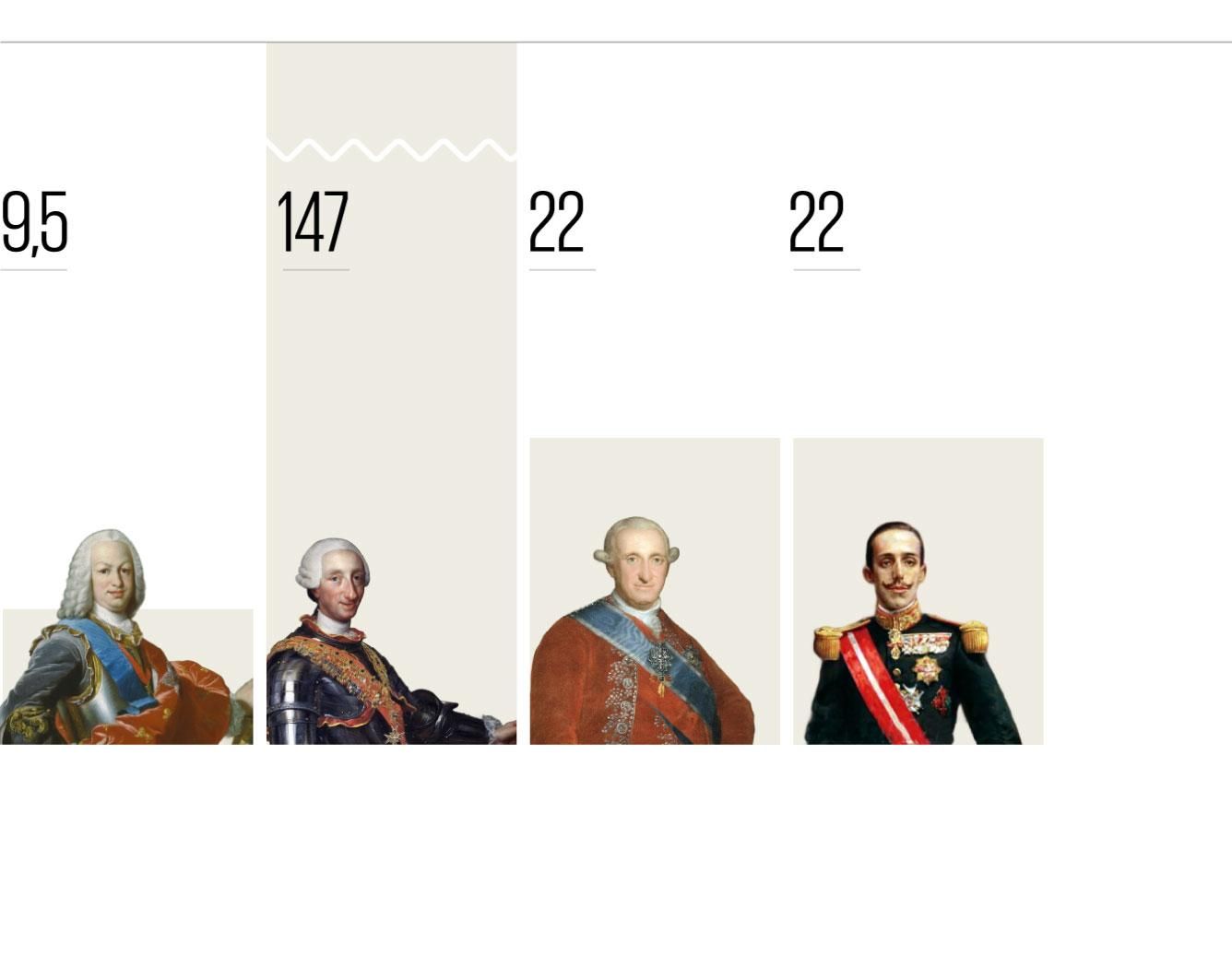 Aunque no se han hallado registros tan amplios de otros monarcas, Juan Jiménez ha localizado en los archivos históricos datos de cacerías concretas de otros Borbones, en periodos de un solo año o un día. Estos números muestran que Fernando VI no lidera el ranking histórico de los reyes españoles más letales con la escopeta. El más activo fue su sobrino, Carlos IV, conocido popularmente como “el cazador”, que llegó a matar a 8.773 animales salvajes en un solo año, 1793, con una media de 24 piezas diarias. Le sigue en esta clasificación Alfonso XIII, quien a principios del siglo XX tenía números muy similares a los de Carlos IV y protagonizó una cacería en la madrileña Casa de Campo en 1922 donde derribó 1.003 piezas en un solo día.