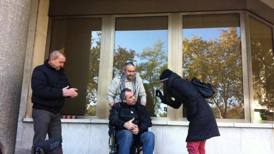 Postrado en una silla de ruedas, con el lado izquierdo de su cuerpo inmovilizado a causa de un ictus. Uno de sus compañeros de la Coordinadora 25-S le empuja por la rampa de los juzgados de Plaza de Castilla. Alberto Torre, de 57 años, entra en la sede judicial para conocer la fecha de su entrada en prisión, tras haber sido condenado a un año de cárcel por el destrozo de parquímetros en 2006, durante las protestas vecinales en el distrito madrileño de Fuencarral-El Pardo.