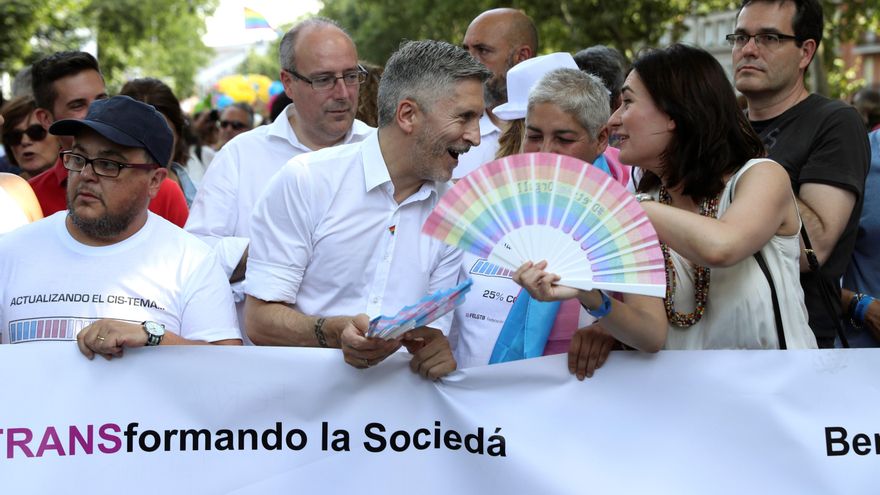 La ministra de Sanidad, Carmen Montón, también ha intervenido en el acto de cierre mostrándose “muy orgullosa” por asistir y homenajeado al compañero de partido y activista LGTBI, Pedro Zerolo, que falleció en 2015. También ha acudido a la manifestación el ministro de Interior, Fernando Grande-Marlaska. Es la primera vez que dos ministros se ponen al frente de la pancarta en la manifestación LGTBI en España.
