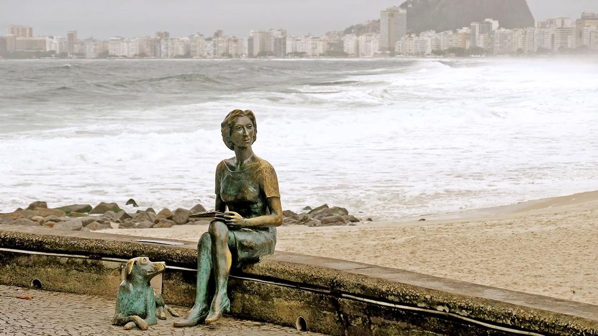 No sabía si preguntarte por quién es esa mujer o por el lugar. Pero te voy a decir el lugar: Río de Janeiro. Ella es la única mujer de las estatuas de bronce que pueden encontrarse en algunos puntos de la ciudad. Y junto a ella su perro: Ulises.