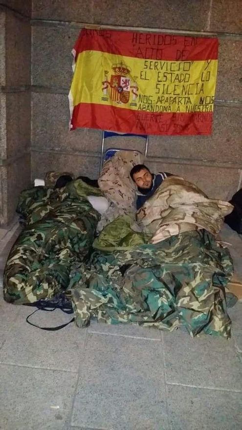En su protesta le ha acompañado Iván Ramos, al que también rescindieron el contrato tras salir por los aires en un accidente en acto de servicio en Afganistán en el que se rompió 17 huesos. Este joven madrileño reclama que Defensa y los Servicios Sociales de la Comunidad de Madrid equiparen su valoración de discapacidad. El gobierno regional le ha concedido un 81% mientras que el departamento que dirigía Morenés le otorgó un 42%. Este porcentaje influye en la retribución anual que le concede el Ministerio.