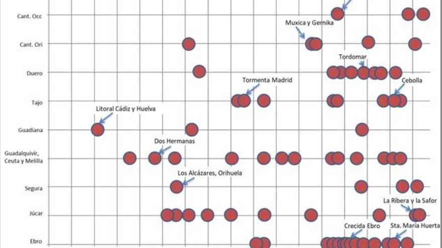 Los estudios en las cuencas del Guadalquivir, el Tajo, el Duero o el Ebro repiten lo mismo: “Se considera que debido a los grandes episodios de crecidas acaecidos desde la aprobación de los planes, el ritmo de implantación de los mismos es insuficiente”. En la del Guadiana se detalla más al introducir que “el avance que han venido teniendo las medidas enmarcadas en este tema importante no se considera suficiente, la inversión pendiente de iniciar y ejecutar es muy elevada”.