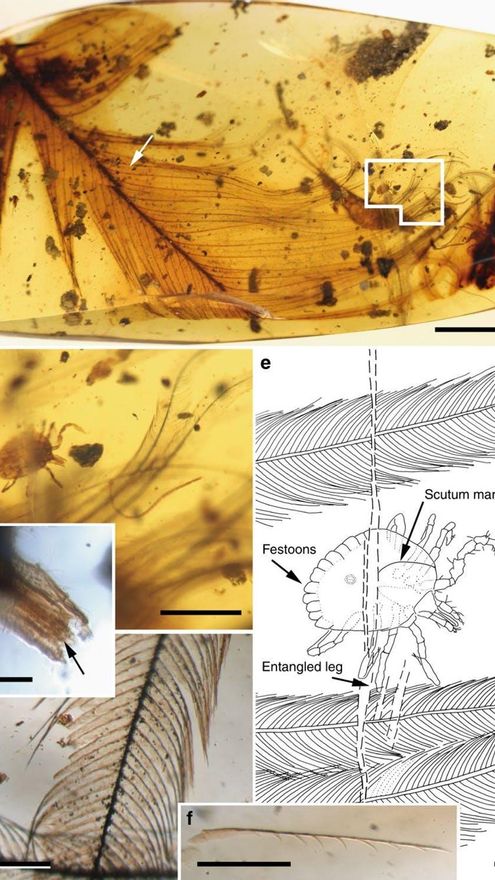 La investigación se centró en unas piezas de ámbar, de casi 100 ma, que encierran en su interior un tesoro: una pluma de dinosaurio con una garrapata aferrada a ella. Las muestras proceden de los yacimientos de ámbar del periodo Cretácico de Myanmar, donde fueron recogidas, pulidas por vendedores locales y adquiridas por un coleccionista estadounidense que las donó para su estudio.