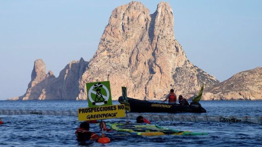 La organización ecologista Greenpeace ha desplegado hoy barreras anticontaminación junto a la reserva natural de Es Vedrá para denunciar los riesgos que tendría para Ibiza y el conjunto del Mediterráneo la autorización de prospecciones petrolíferas en las proximidades de Baleares.