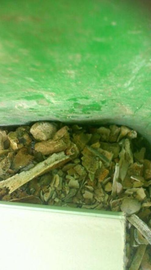 La imagen muestra el interior del contenedor, ubicado junto a la entrada al camposanto, en el que se entremezclan restos óseos con escombros. Aunque desde el partido socialista señalan desconocer su procedencia, explican que según el relato de los vecinos los huesos proceden de tumbas vaciadas en el cementerio y de restos de cremaciones.