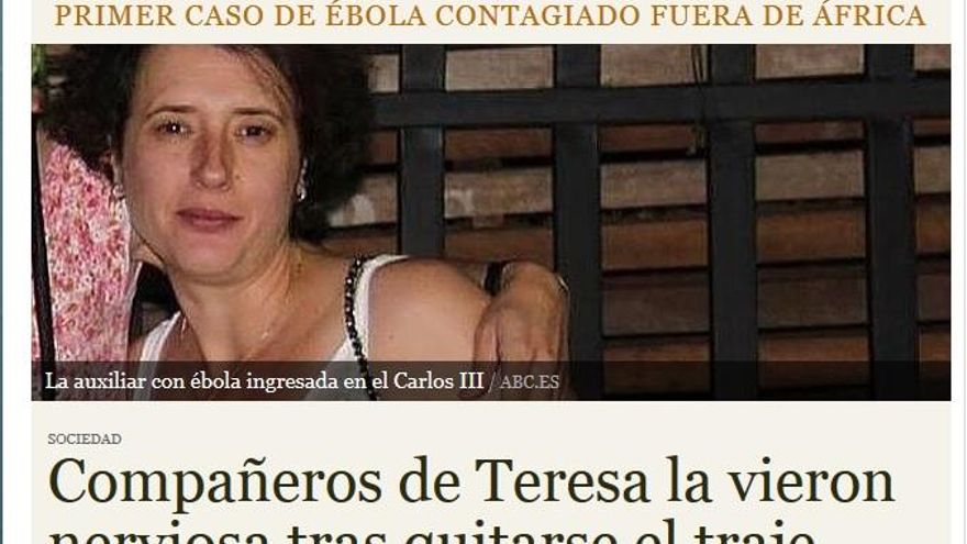 Algunos de ellos, como ABC, han incluido temas que señalan a Teresa Romero como culpable de manera clara: “Tras ocultar su accidente, Teresa emprendió un cúmulo de imprudencias que ha puesto en riesgo a, al menos, 84 personas que ahora están en observación”, recoge una pieza que abrió la versión digital del periódico en la mañana del jueves. Para sostener su información se basan en “fuentes cercanas a la investigación” sobre las causas de la infección.