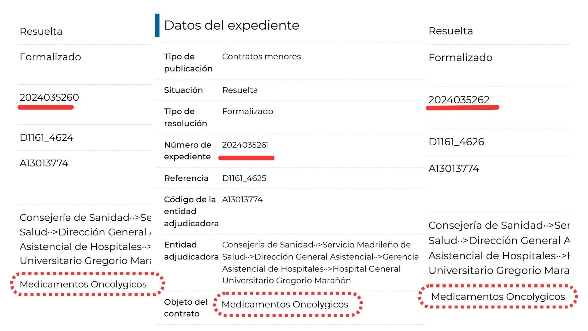 En la mayoría de hospitales, los conceptos del contrato –salvo en Puerta de Hierro, Príncipe de Asturias o Fuenlabrada que siguen usando el nombre del medicamento o la pieza de la máquina que se necesitaba– se emborronan por vaguedades más generales y difíciles de rastrear: “material de laboratorio”, “material quirúrgico, asistencial y curas” o “medicamentos oncológicos” –el concepto en el que se gastaron más millones entre 2016 y 2024–.