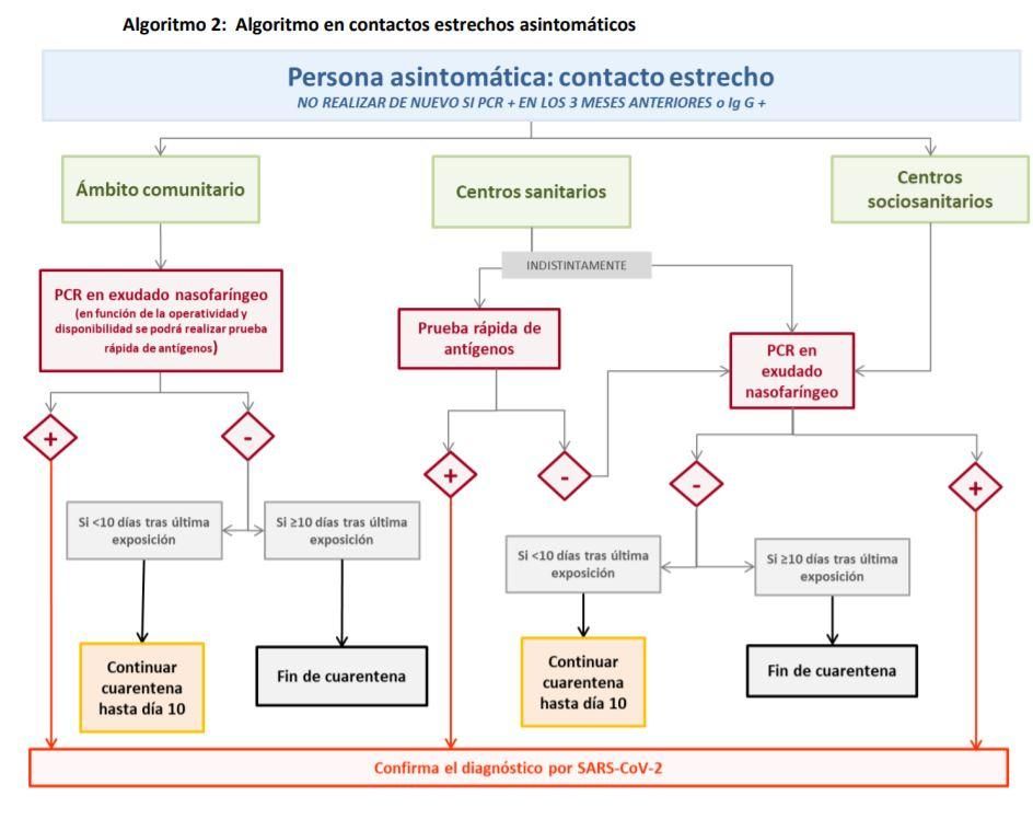 El principal error de fondo es que las propias compañeras deberían estar guardando cuarentena. Tal y como narra los hechos Elena, ella dio positivo en COVID-19 el sábado, y sus compañeras habían dejado el piso el viernes para ir a ver a sus familias. Hasta ese momento, hacía vida normal con ellas. Por tanto, son contactos estrechos convivientes, y han estado con ella recientemente, hace menos de 2 días. Para las personas en su situación, contacto de un caso COVID-19, se les indica “cuarentena durante los 10 días posteriores al último contacto con un caso confirmado”. No pueden, tras haber estado con Elena, ir a la universidad, ni al gimnasio, ni estar con personas ajenas al piso, en los próximos 10 días, en ningún caso. Tampoco si ellas dan negativo en COVID-19. Este aislamiento estricto de contactos es “una de las principales medidas de prevención para controlar la transmisión”, describen en Sanidad. En el diagrama adjunto se puede leer que la cuarentena de 10 días debe durar aunque la PCR, si se las hacen, dé negativo. Tiene que ser igualmente “autoaislamiento inmediato”.