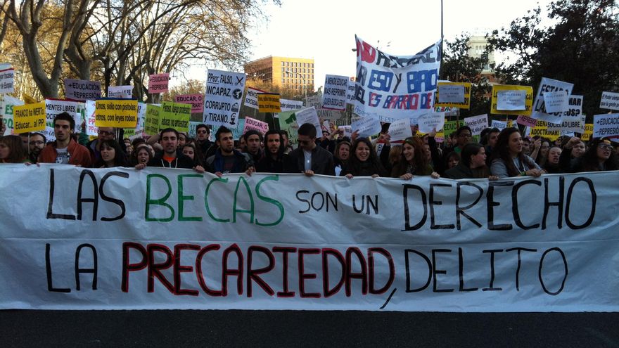 Quieren hacerse escuchar y cada vez gritan más alto. “Hemos dicho de una forma clara que los estudiantes no nos vamos a dejar robar el futuro”, lee Ana García, secretaria general del Sindicato de Estudiantes, con la mirada puesta en el ministerio de José Ignacio Wert, que tiene enfrente. Pero algunos, como Andrea, cada vez lo ven más negro. “Nos quieren recortar de todos sitios. No sé qué será de mí el año que viene”, reconoce a pocos meses de terminar el último curso de Bachillerato. Y, de repente, entre la multitud se alcanza a oír una voz optimista : “¿Y si otros lo han conseguido, por qué no nosotros?”