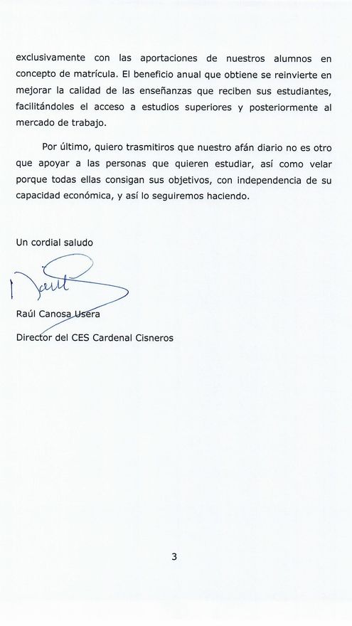 En la comunicación enviada, el director del centro realiza un relato de estos hechos, señalando que “durante su último curso (12 meses), el citado alumno se matriculó y superó, en las convocatorias de junio y septiembre: cinco asignaturas nuevas; dos que ya había superado en su universidad de origen pero que no le fueron adaptadas , y cinco que ya había cursado en el Cisneros en años anteriores”.