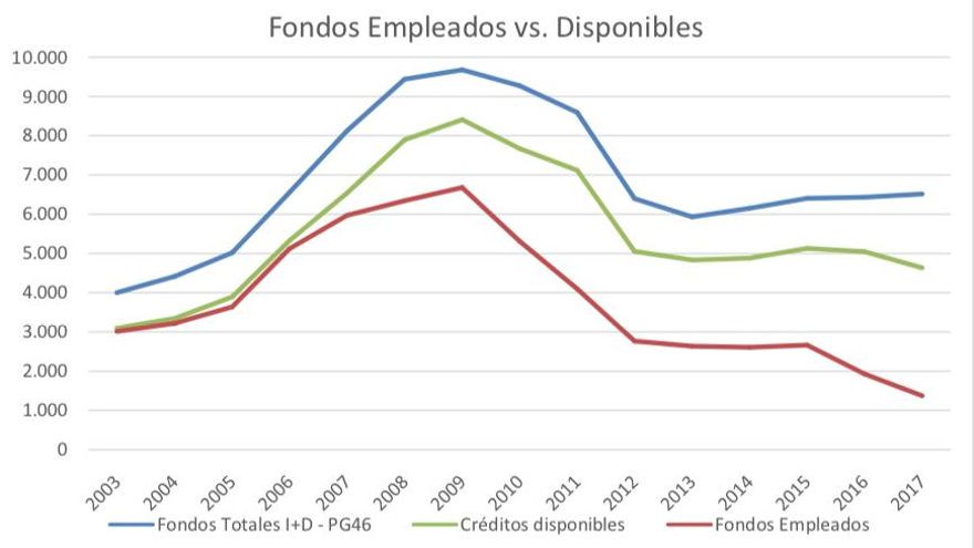 La principal partida no ejecutada siguen siendo los fondos financieros, esencialmente préstamos y créditos que apenas son utilizados en la investigación pública, pero que siguen manteniéndose como una parte sustancial del presupuesto de I+D, que este año ha sido de un 59,72%.