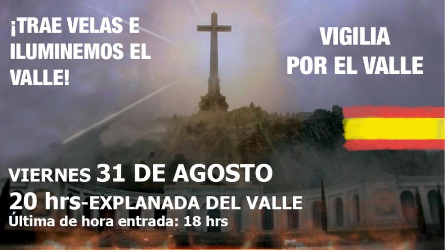 La vigilia franquista pretende “iluminar” con velas la explanada del Valle de los Caídos y rezar “oraciones para pedir la intercesión de los santos y mártires para la preservación intacta del monumento y de la tumba de Franco”, informa Movimiento por España. El grupo ultra se vende en sus comunicados como los “herederos” de los golpistas de 1936.