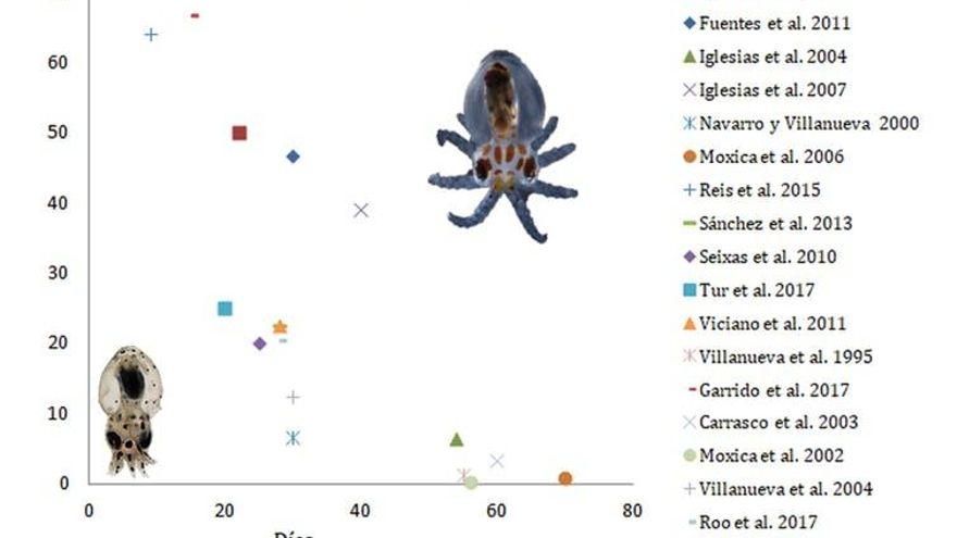Tras más de 25 años de investigación, las mortalidades durante la etapa larvaria superan el 96,6% a los 60 días. Menos de un 0,1% llegan a la edad adulta. Se ha logrado completar el ciclo de vida del pulpo en cautividad, pero la mortalidad larvaria es su talón de Aquiles.