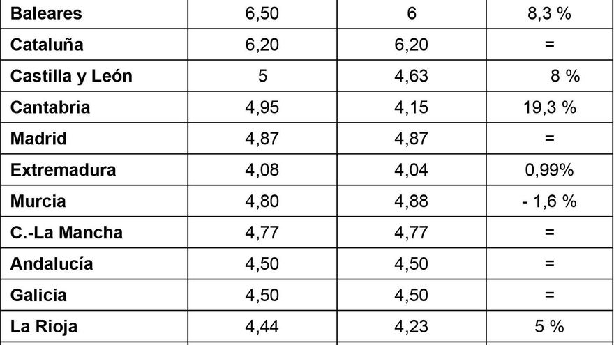 Además, cada Comunidad sigue una política diferente con los precios, sin un criterio aparente a raíz de los números. Mientras Cantabria los ha subido casi un 20%, Murcia los ha bajado un 1,6% y diez regiones, desde la más cara (Aragón) hasta la más barata (Asturias), los han congelado. Estas políticas “han provocado una caída en el número de comensales. Estamos pasando de tasas del 70% de niños que acudían al comedor a unas por debajo del 50%”, afirma José Luis Pazos, tesorero de la Ceapa. Más aún, según la asociación, hay comedores que el año pasado ganaron dinero.