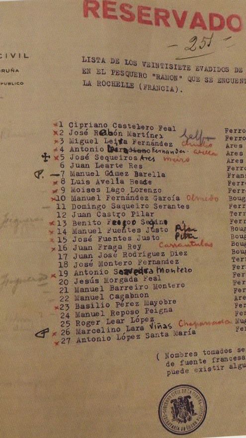 “Nos juntamos en el castillo de Ares. Los de aquí salimos como si fuésemos de la Guardia Civil. Rebón vestido de teniente, tres de guardias, yo de falangista y a los demás los hicimos pasar por presos. El único miedo era encontrarnos a la verdadera Guardia Civil”. Así relataba Juan Leal uno de los momentos álgidos de la huida que protagonizó en julio de 1939 de la España franquista, con otros 26 compañeros con los que compartía los valores democráticos y republicanos. Su testimonio se recoge en A fuxida do bou Ramón, un libro en el que se plasma la investigación desarrollada durante años por los investigadores Enrique Barrera y Eliseo Fernández.